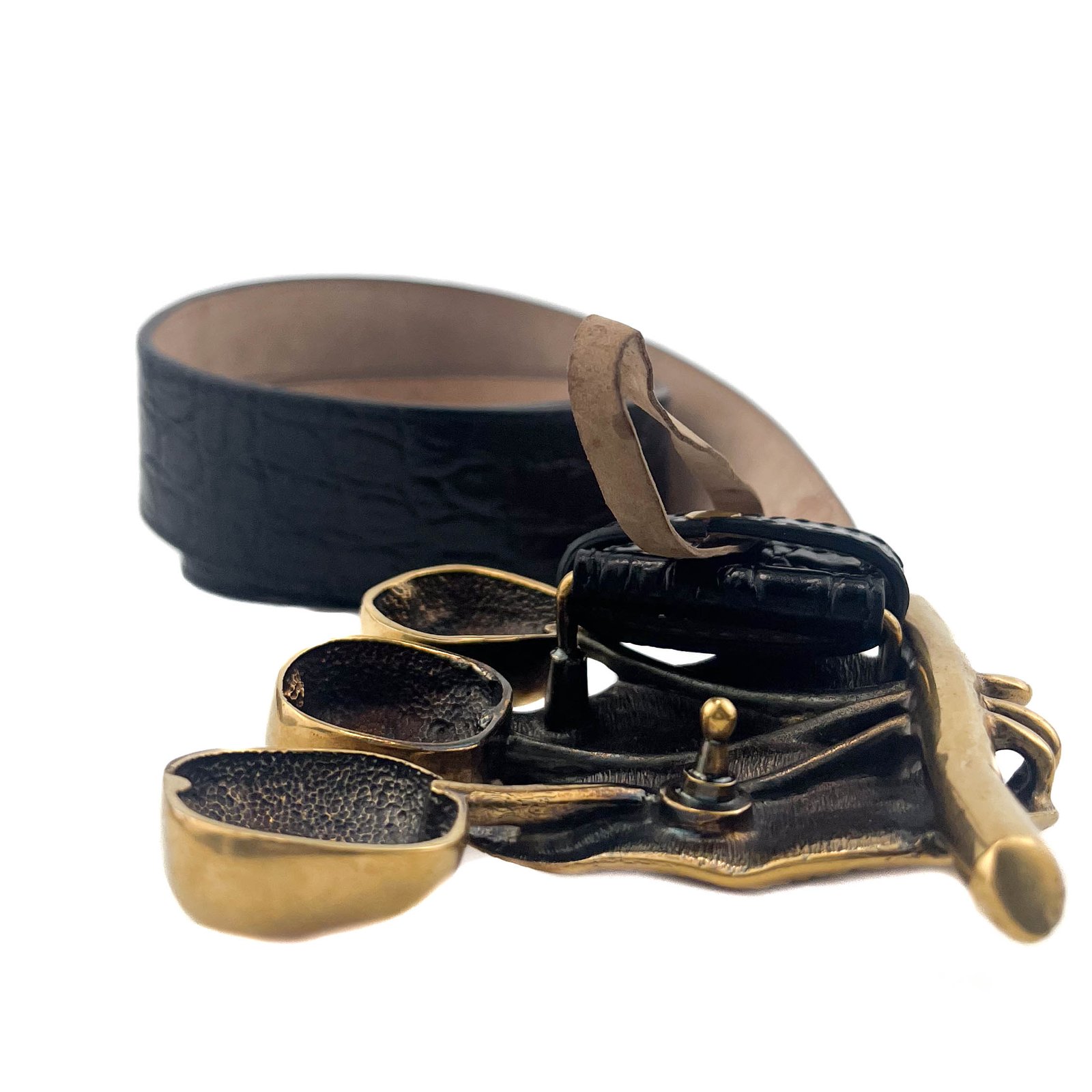 - Materiale: Pelle di alta qualitĂ con fibbia in metallo dorato