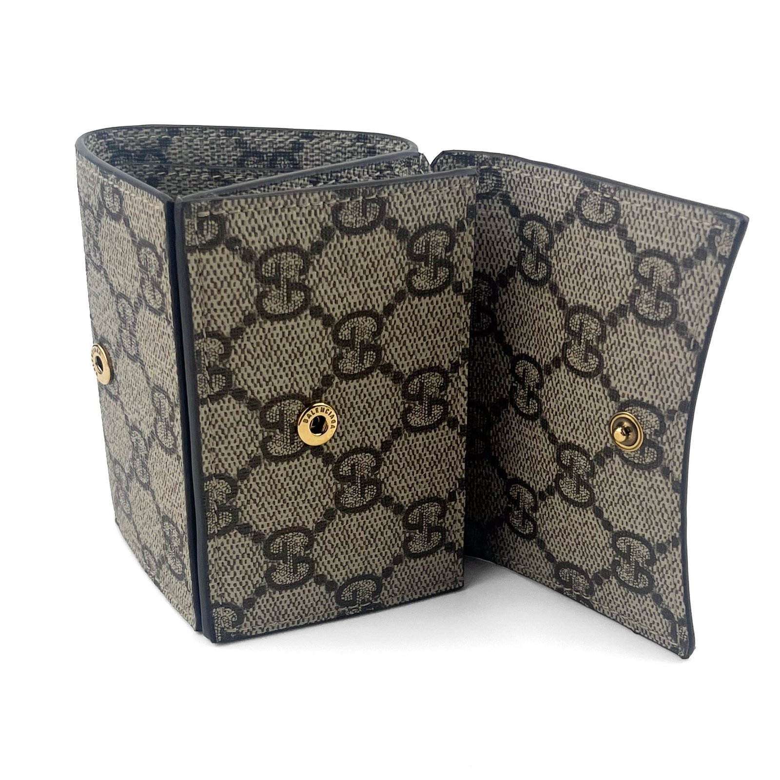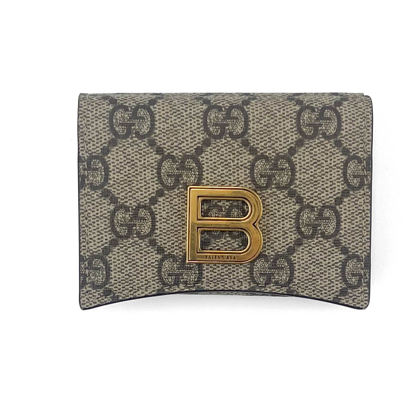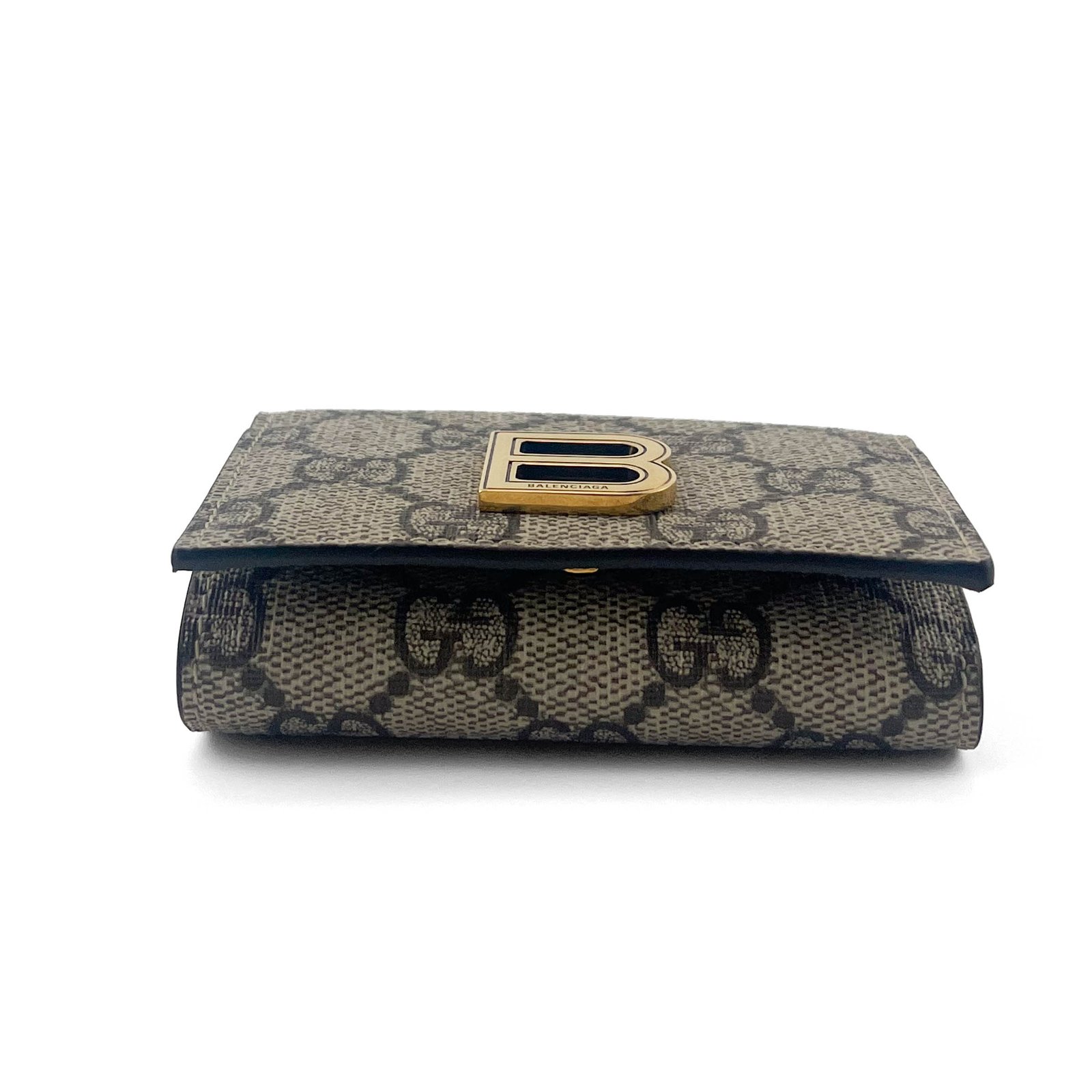 - Dettagli: Portafoglio portacarte della collaborazione esclusiva Gucci x Balenciaga, parte della collezione The Hacker Project, con iconico motivo GG e logo Balenciaga in metallo.