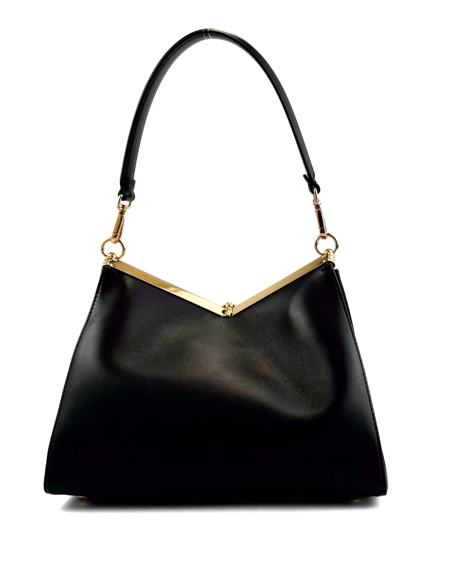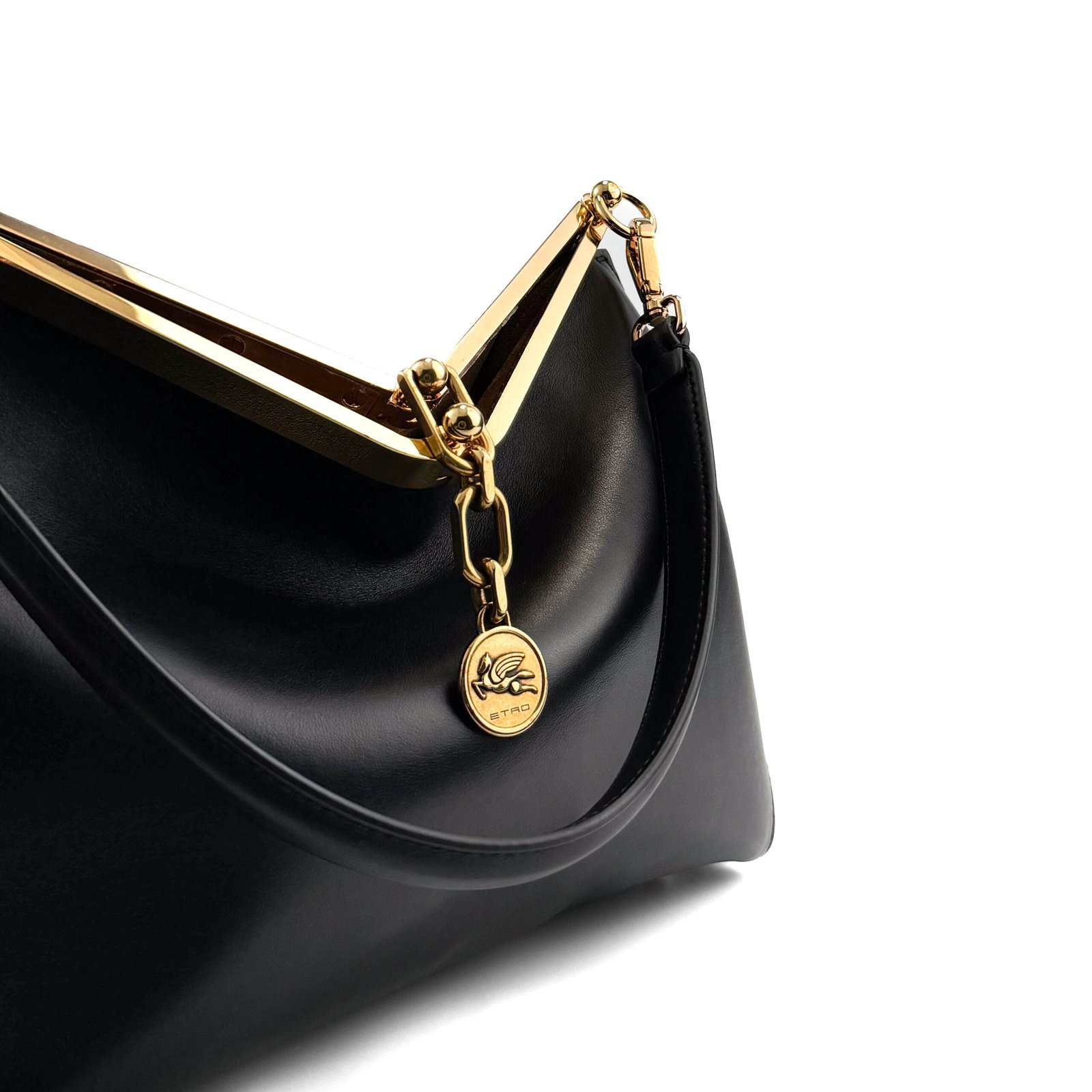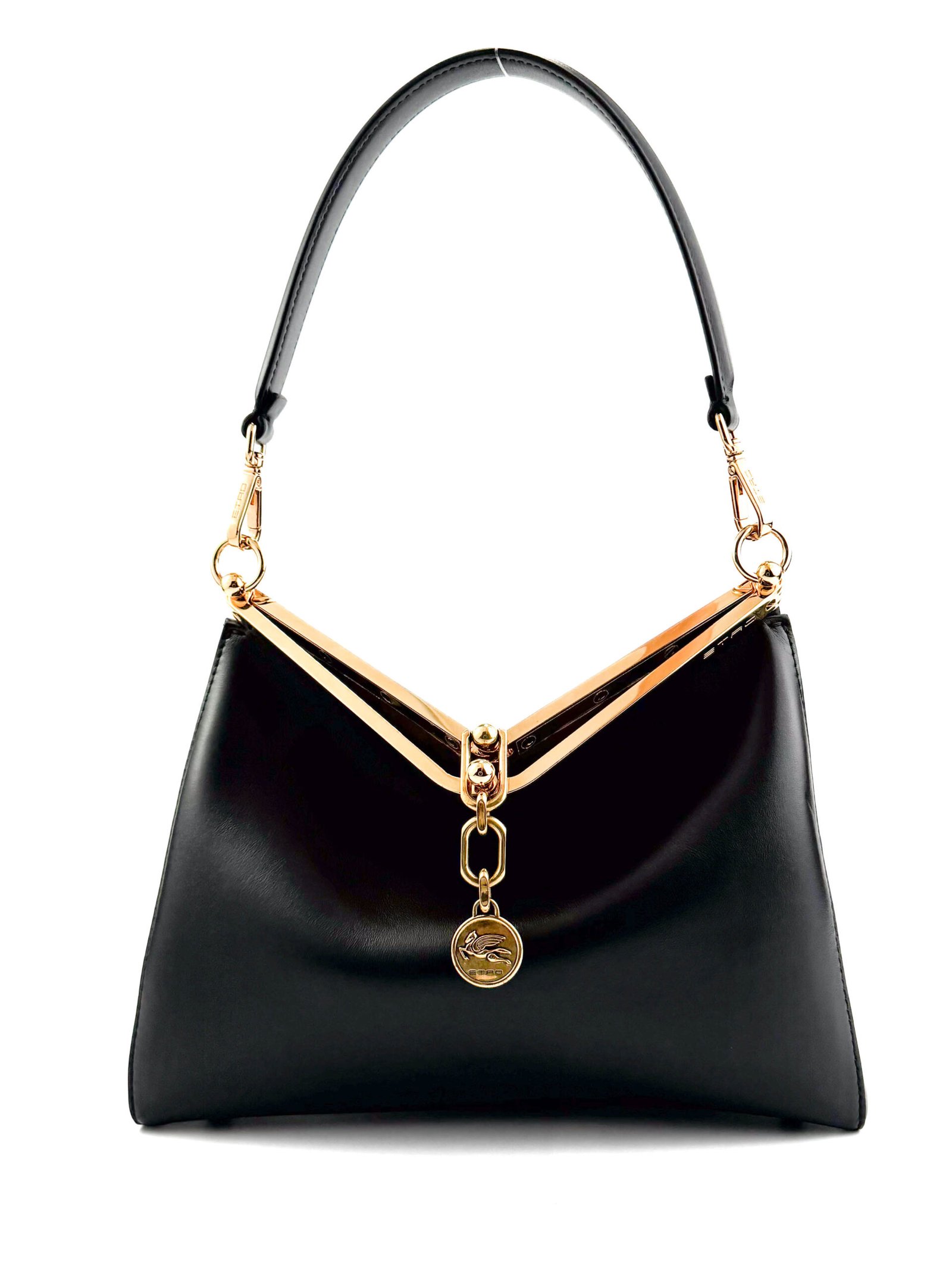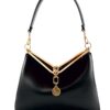 La borsa Etro Medium Vela è un’aggiunta raffinata e versatile alla tua collezione, che mette in mostra l’eleganza senza tempo e la lussuosa maestria di Etro. Realizzata in pelle nera liscia, questa borsa presenta una silhouette strutturata con una sorprendente cornice dorata a forma di V nella parte superiore, che aggiunge un tocco di raffinatezza. La borsa è inoltre impreziosita dal caratteristico logo Etro, che la rende un pezzo perfetto da indossare sia di giorno che di sera.