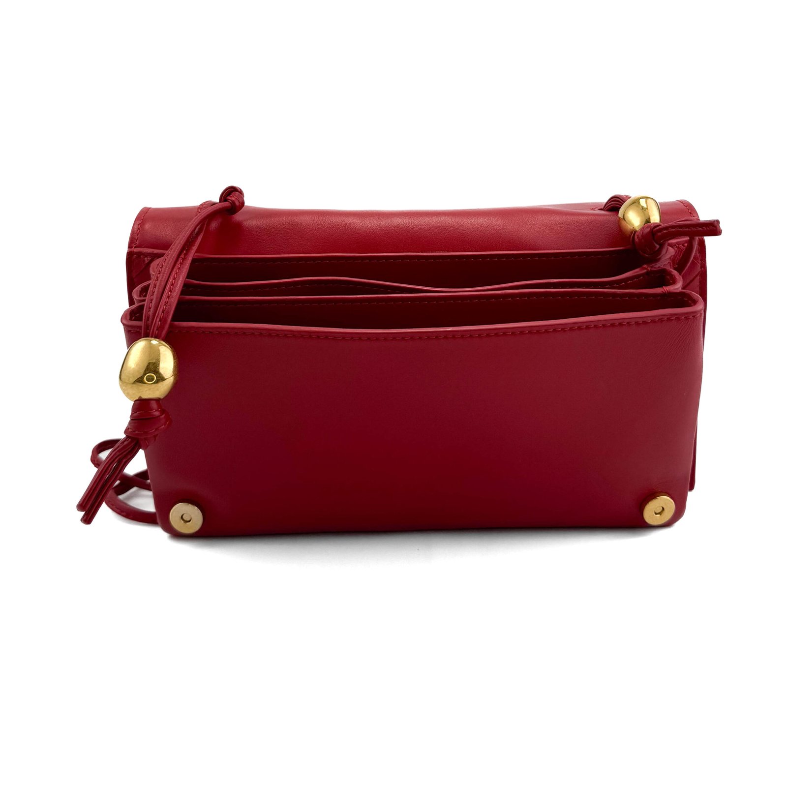 - Hardware: Accessori dorati con linguette in pelle