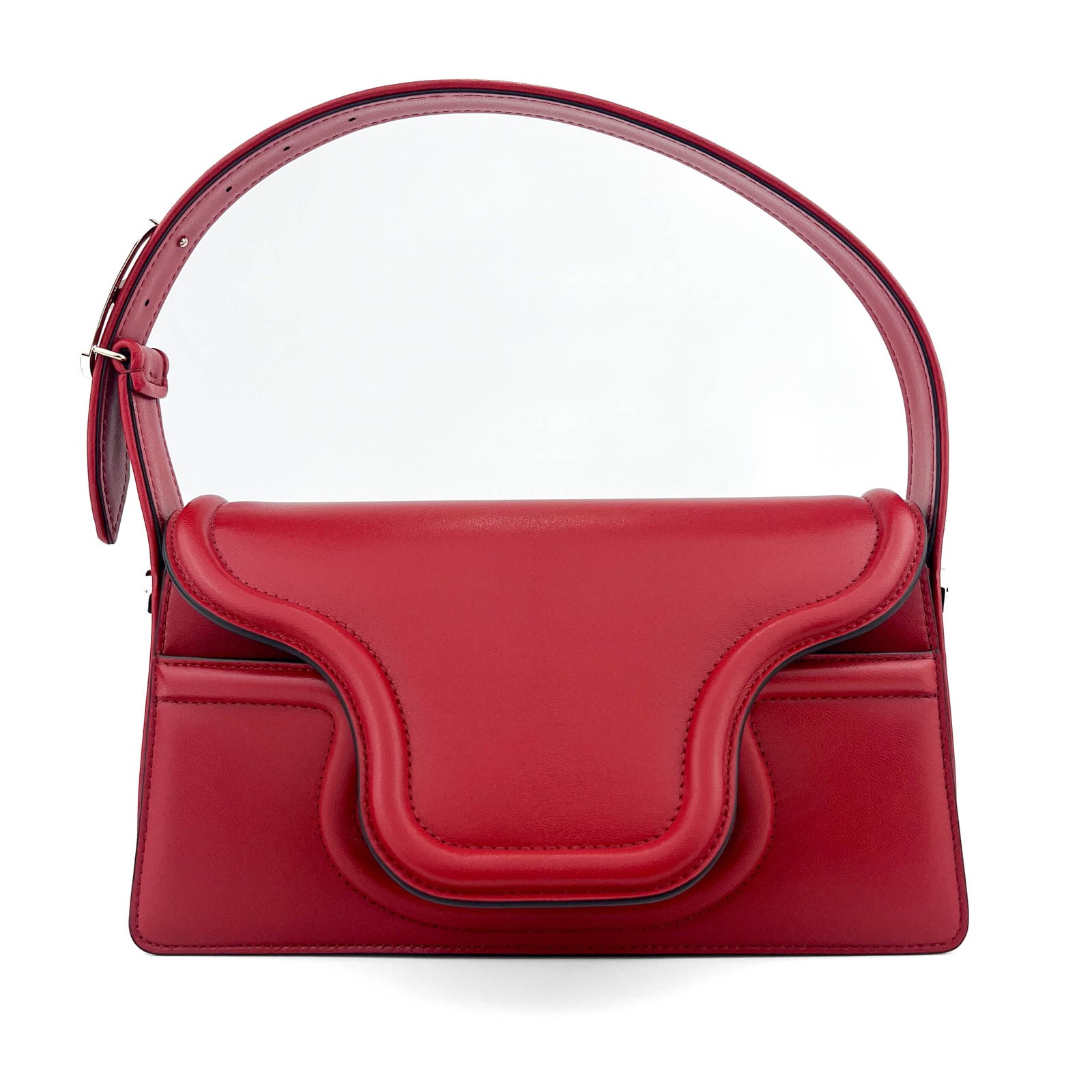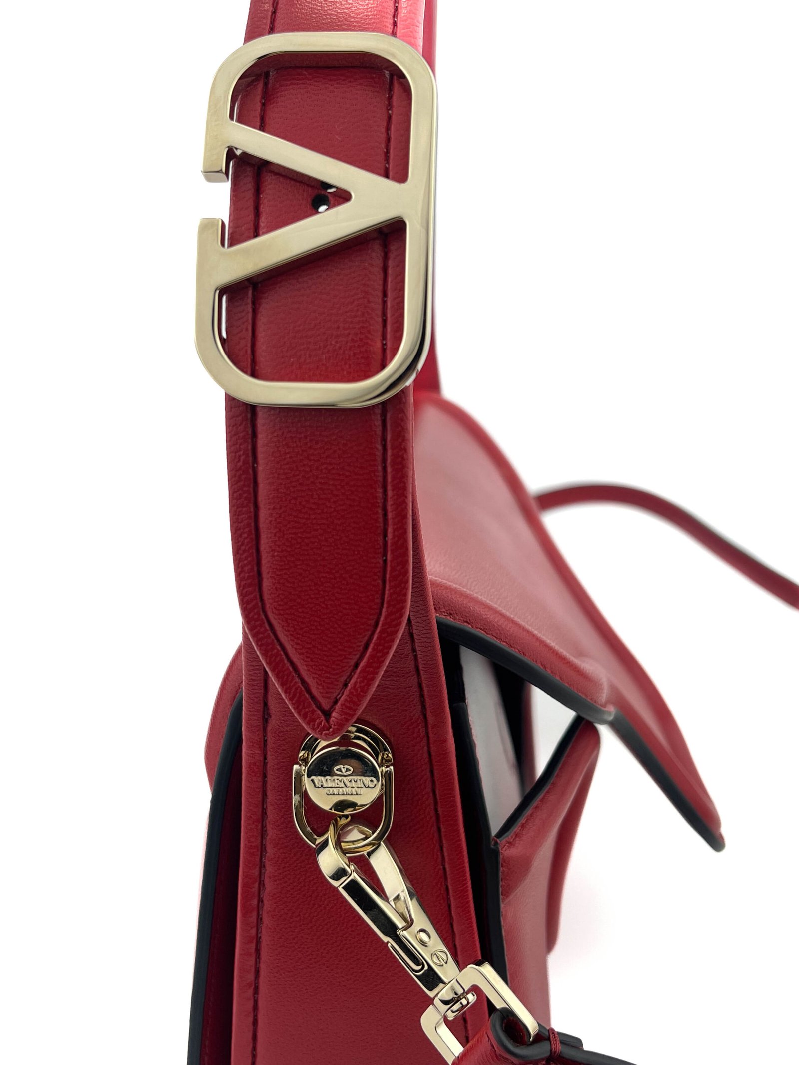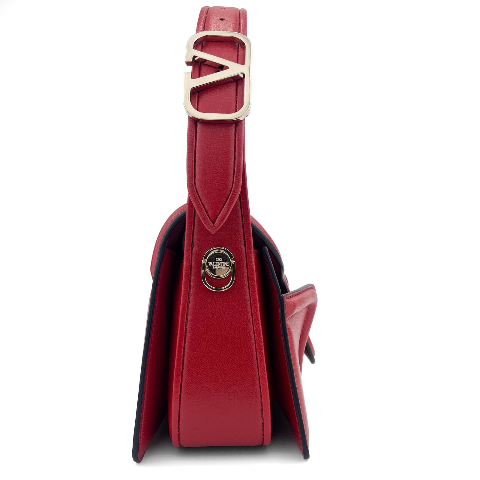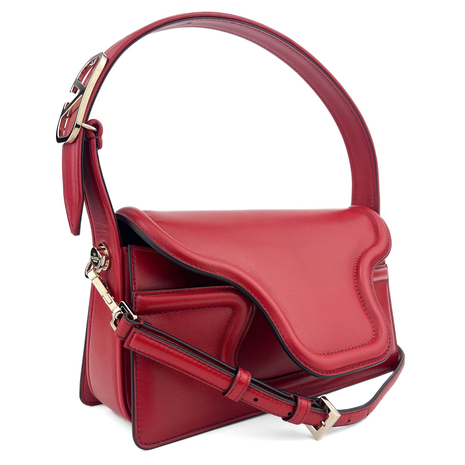 La borsa a tracolla Valentino Garavani Le Grand Deuxième in pelle rossa è una straordinaria fusione di design d’avanguardia e funzionalità quotidiana. La sua silhouette scultorea è una dichiarazione audace, mentre l’esterno in pelle lucida le conferisce un aspetto raffinato e sofisticato. La borsa è caratterizzata da un’esclusiva patta frontale a forma di onda e da finiture dorate, che incarnano il lusso e l’artigianalità tipici di Valentino. L’ampia tracolla in pelle permette di indossarla comodamente durante le uscite giornaliere, mentre l’interno spazioso la rende tanto pratica quanto elegante.