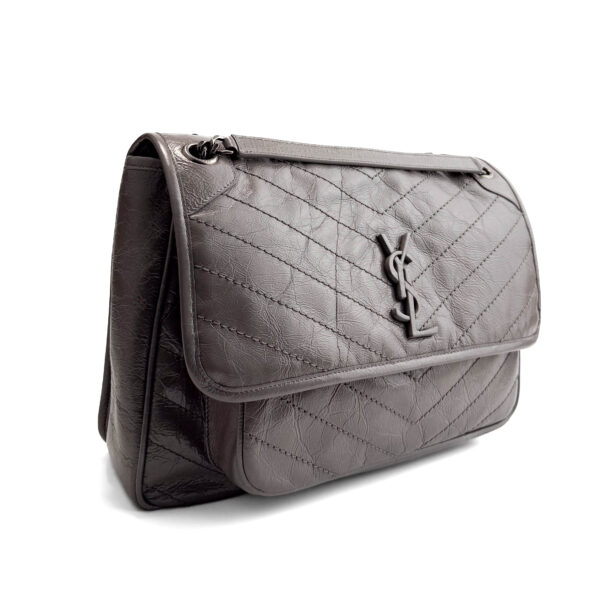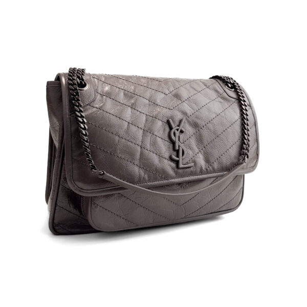Colore: Grigio con motivo trapuntato a chevron e logo YSL tono su tono