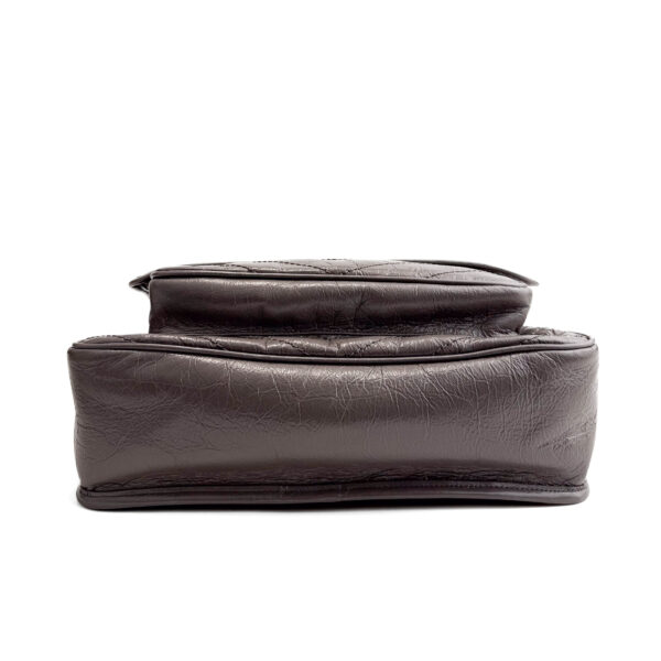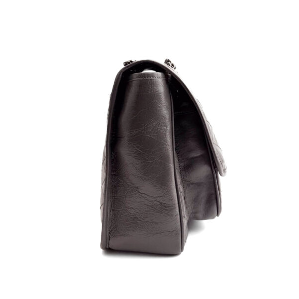 Dettagli: La Niki Large di Saint Laurent è una borsa distintiva che unisce fascino vintage e funzionalità moderna. Realizzata in pelle di alta qualità con effetto vintage stropicciato, presenta una silhouette rilassata adornata dal monogramma YSL iconico sulla patta frontale. La tracolla regolabile in catena e pelle offre versatilità, permettendo di indossarla a spalla o a tracolla. L’interno spazioso è progettato per contenere gli elementi essenziali quotidiani, con due scomparti principali, una tasca centrale con zip e una grande tasca posteriore a fessura per una maggiore praticità. La chiusura magnetica garantisce una conservazione sicura, mentre l’hardware tono su tono ne esalta l’eleganza sobria. Ideale per chi cerca un accessorio senza tempo che incarni la sofisticatezza e la praticità tipiche di Saint Laurent.